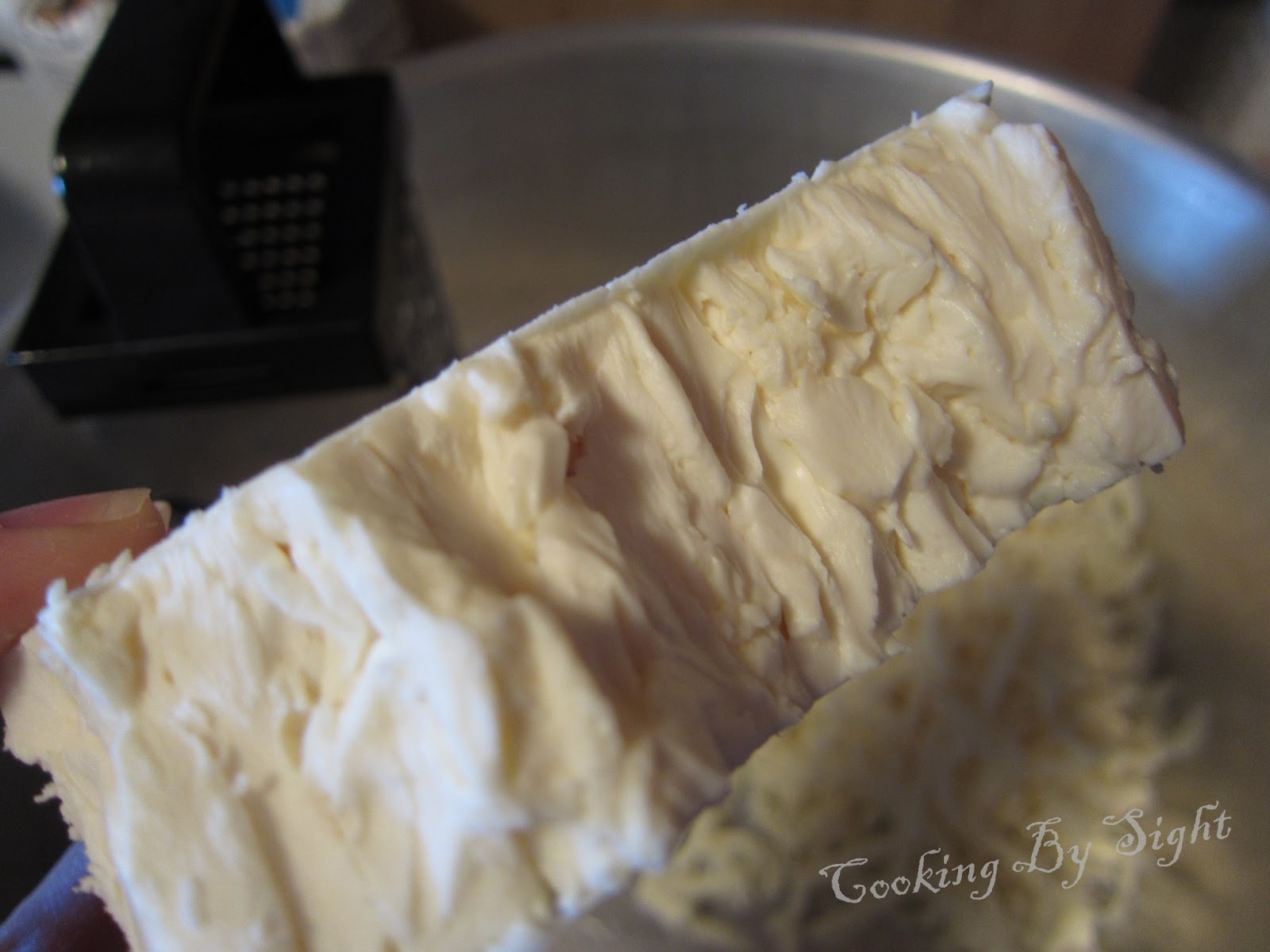 In the meantime, start shredding. I used the large holes of a box grater for this. First the mozzarella,